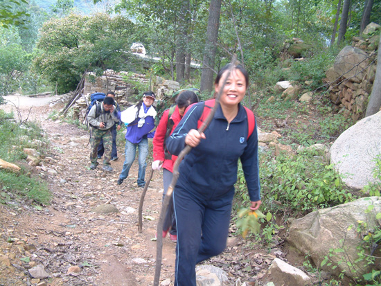 百花峪素稱天然氧吧,的確令人心曠神怡,忍不住深吸一口山間的清新空氣,驅(qū)走一身的混濁。這里沒有城市的喧鬧,沒有工作的壓力。大家都滿懷激動,躍躍欲試,期待著一個接一個自我挑戰(zhàn)的項目。
