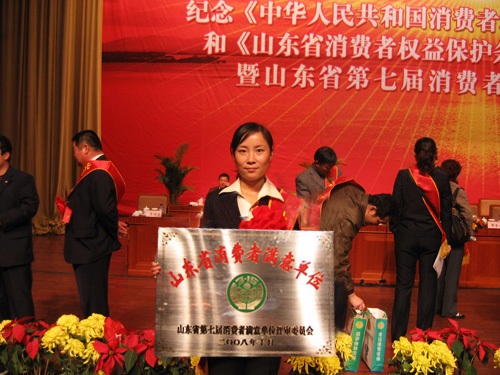 10月14日, 我公司又喜獲“山東省第七屆消費者滿意單位”榮譽稱號。這是我司在本年度繼“中國行業(yè)電子商務網站100強”、“消費者維權單位”等榮譽稱號之后廣大客戶給予威龍公司的又一次肯定和認可。