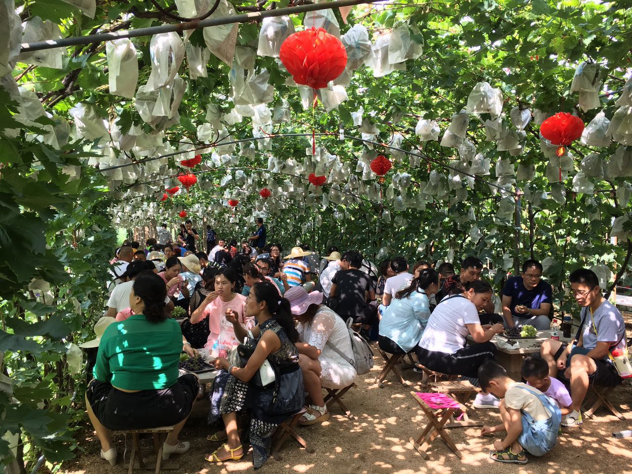 葡萄架下拍個合影留念
